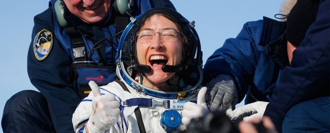 Alături de ea au revenit astronautul italian Luca Parmitano și rusul Alexandr Skvortsov