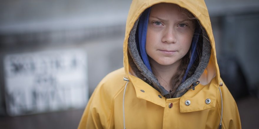 Thunberg este o fată din Suedia în vâzrstă de 16 ani. Anul trecut în vară, ea a început să demonstreze în fața Parlamentului suedez; ea solicita mai multă implicare în problema schimbărilor climatice. În săptămânile care au precedat alegerile generale din Suedia, Thunberg a stat în fața clădirii Parlamentului din Suedia. Ea ținea o pancartă pe care scria “Skolstrejk För Klimatet” („Grevă școlară pentru climă“).