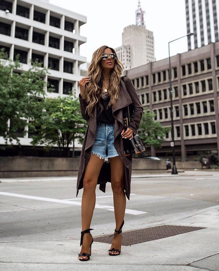 O combinație destul de provocatoare, pe care celebritățile și fashion bloggerii din întreaga lume o îndrăgesc și o poartă cu încredere – trenci și pantaloni scurți. Încheiată la haină veți arăta elegant, iar descheiată – îndrăzneață și sexy.