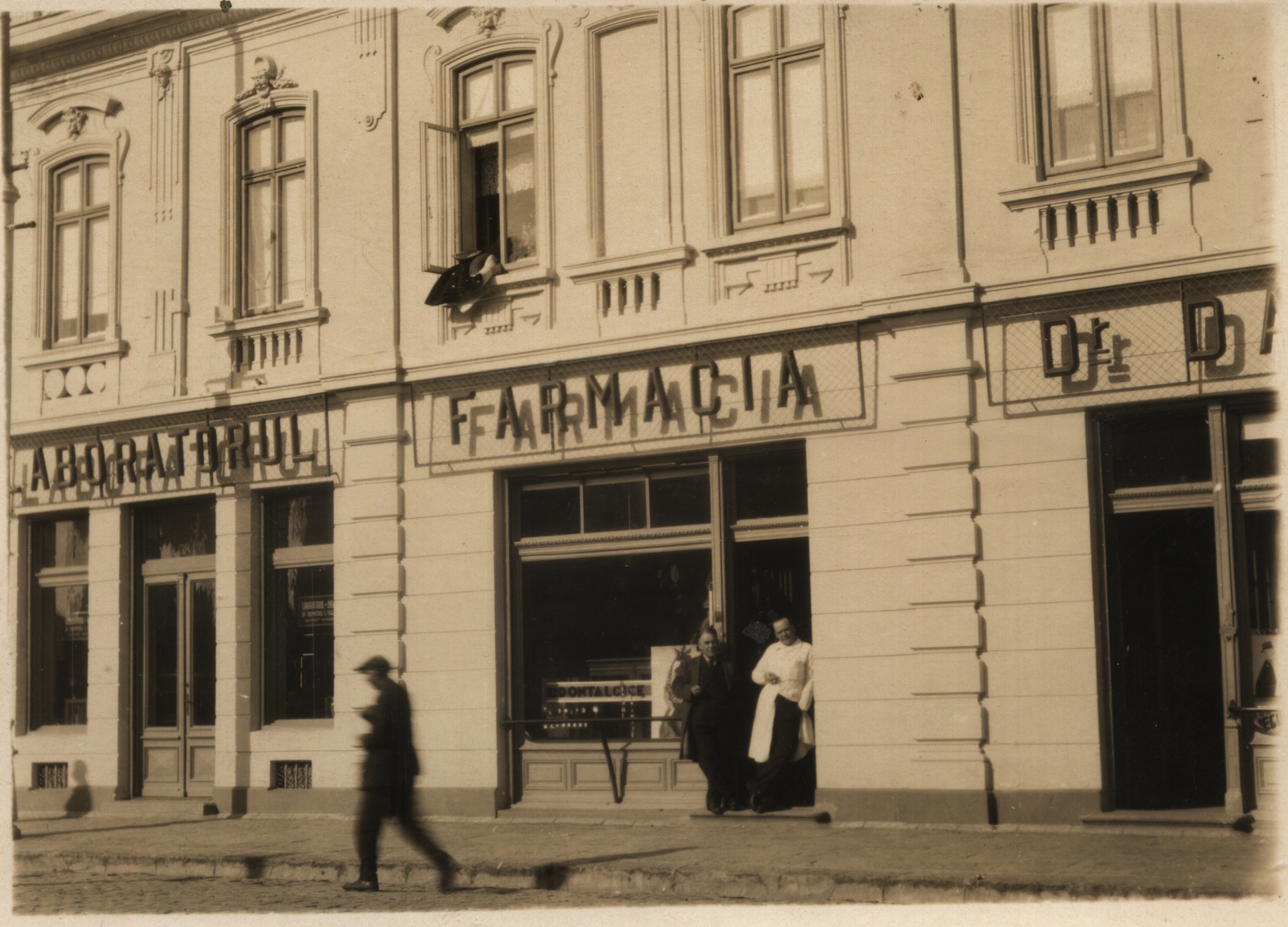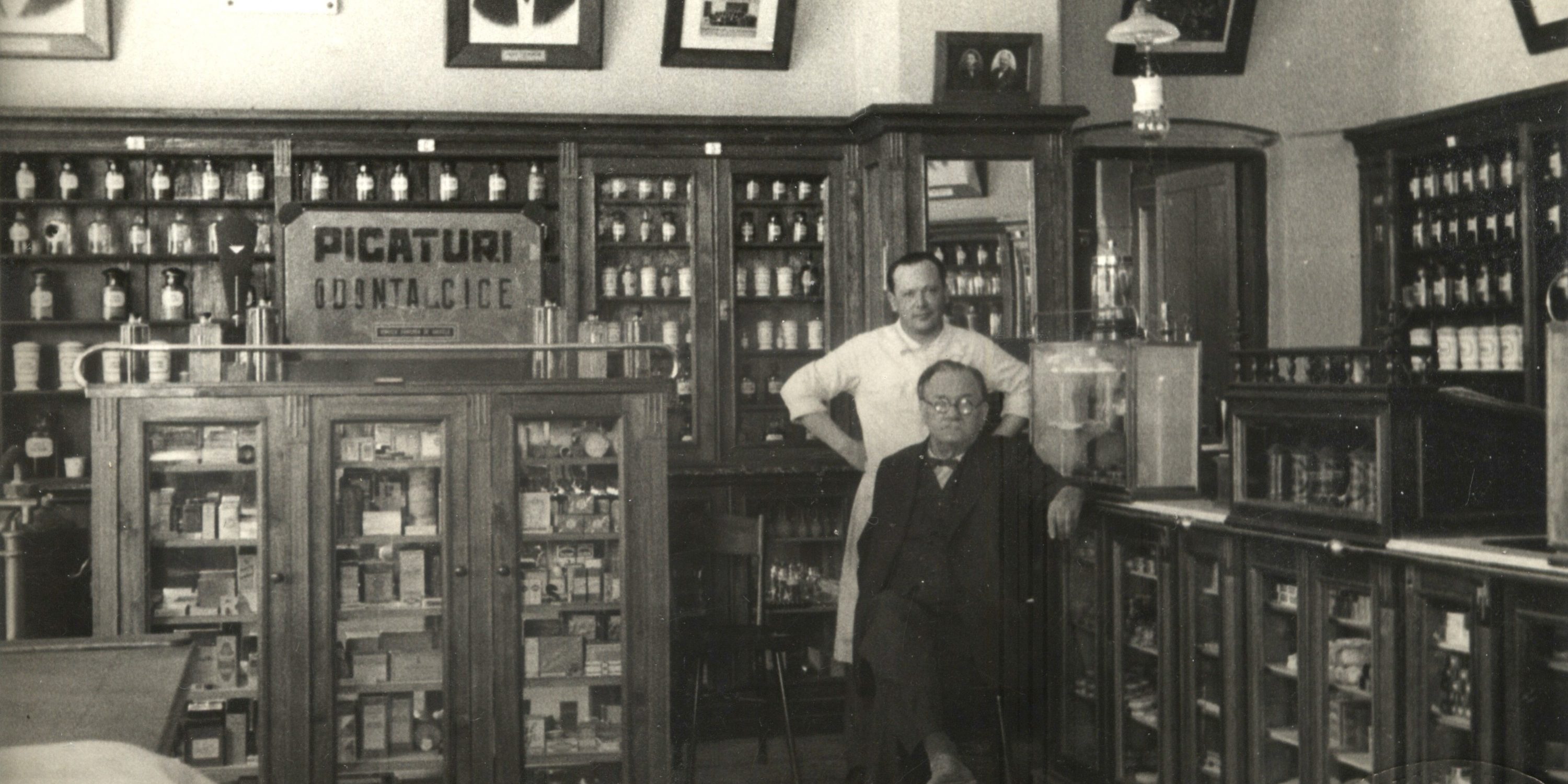 Farmacia „Faltis” funcţionează şi astăzi în aceeaşi clădire veche, dar renovată, din centrul Brăilei. Ion Faltis (stânga) şi fiul Dumitru, într-o imagine de la începutul anilor ’20
