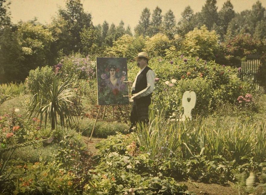 Van Besten pictând în grădina sa, 1912