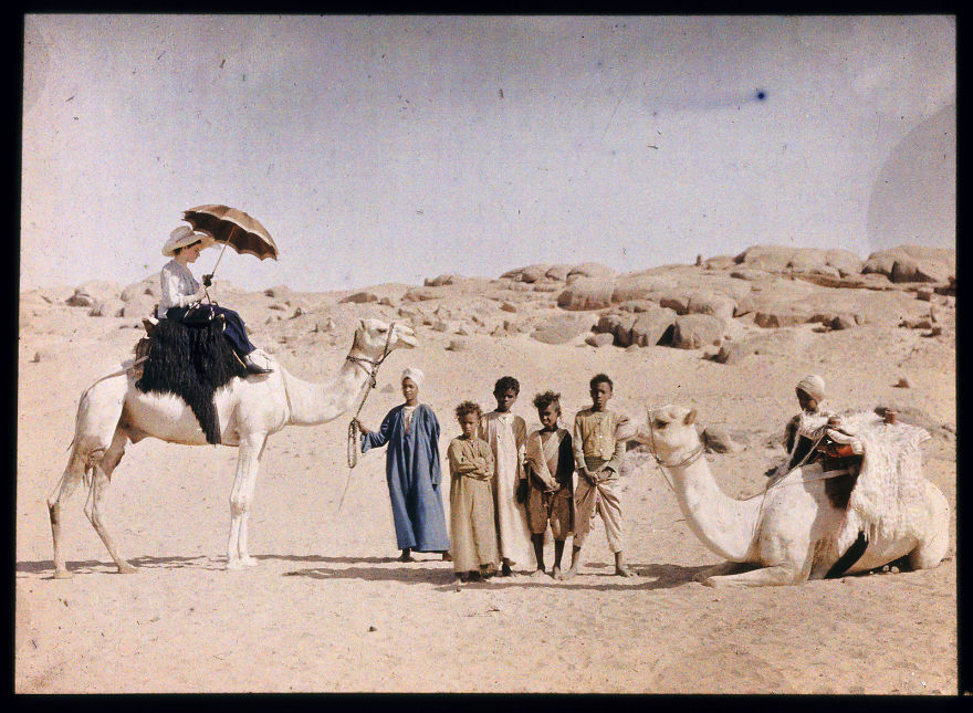 Else Paneth pe cămilă (autochrome), 1913