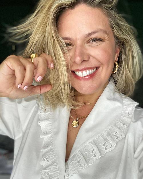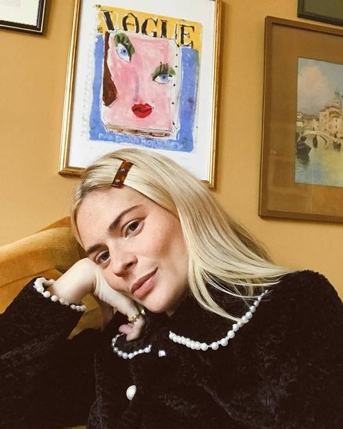 Lotte accentuează tunsoarea cu o agrafă cu perle.