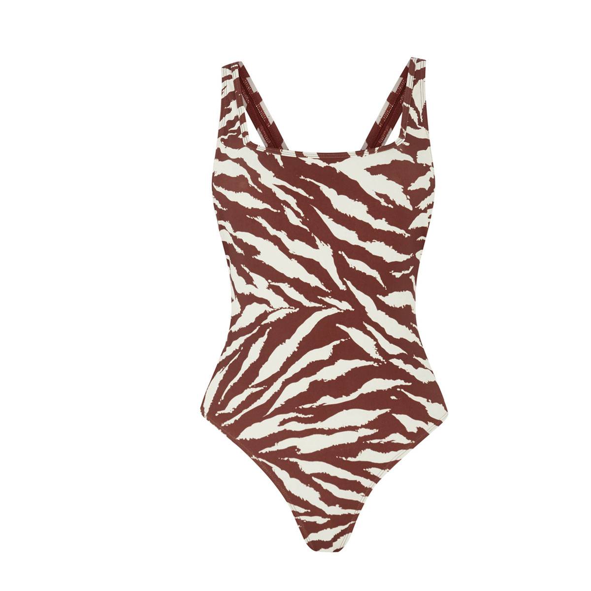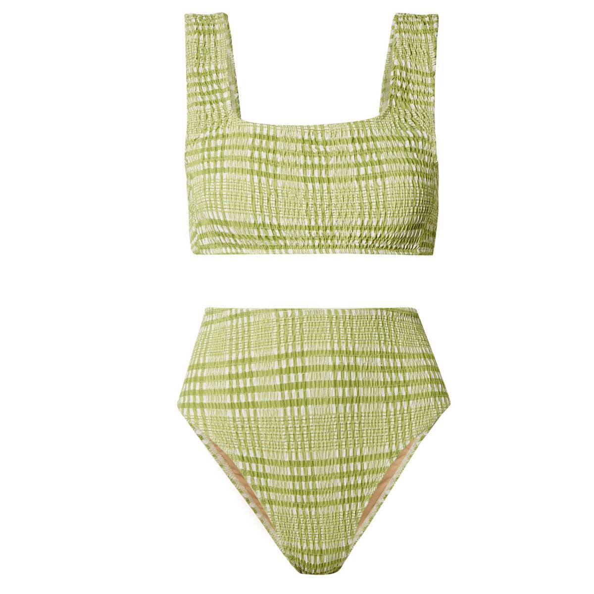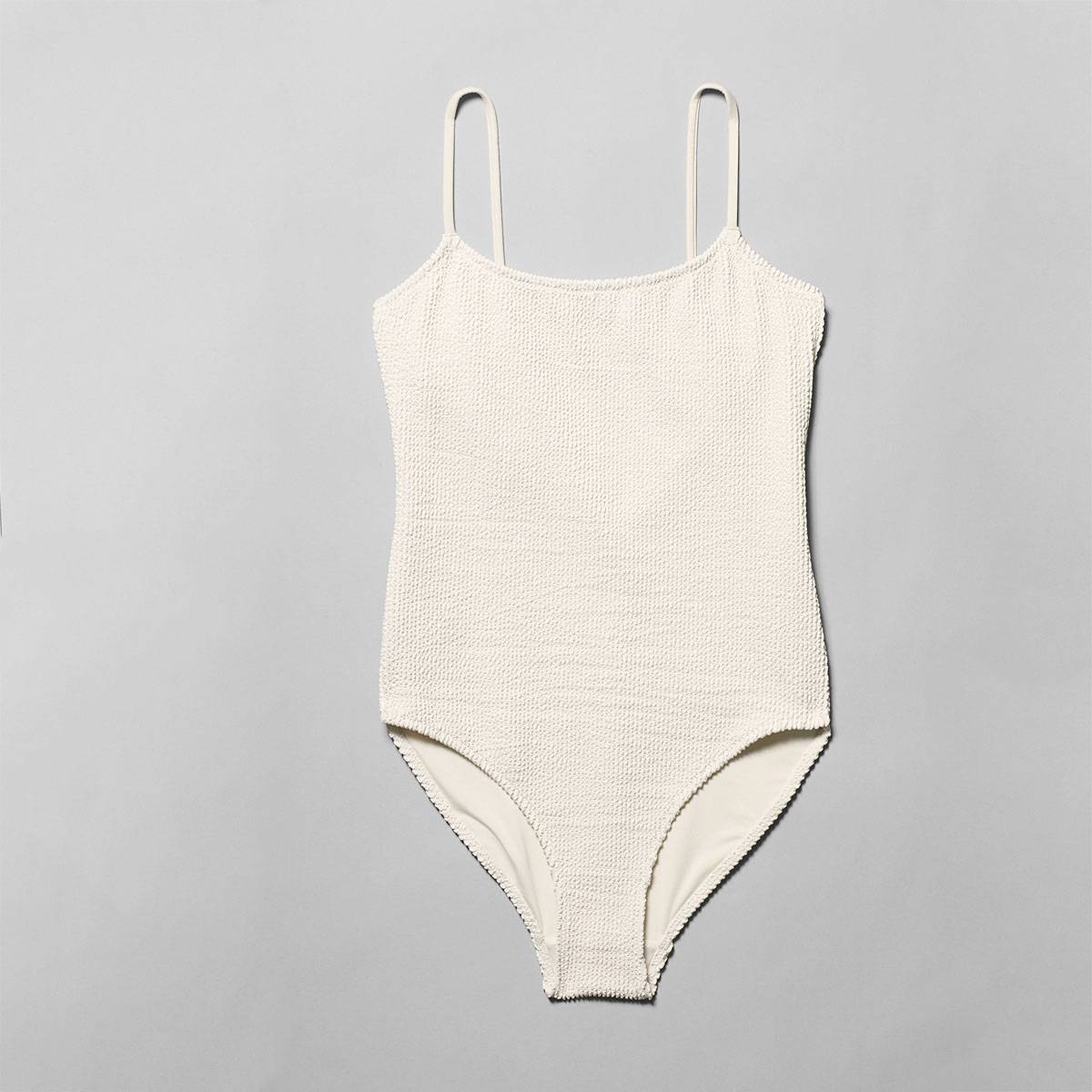 Gândește-te pentru un astfel de costum de baie la bijuterii din aur și o pălărie de paie care ar putea o tușă finală look-ului tău.