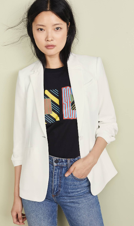„Îmi place un blazer ușor pentru că se potrivește și la rochie și la jeanși. optează pentru unul în culori neutre. Chiar și în zilele și nopțile calde, este bine să ai la îndemână un blazer.“