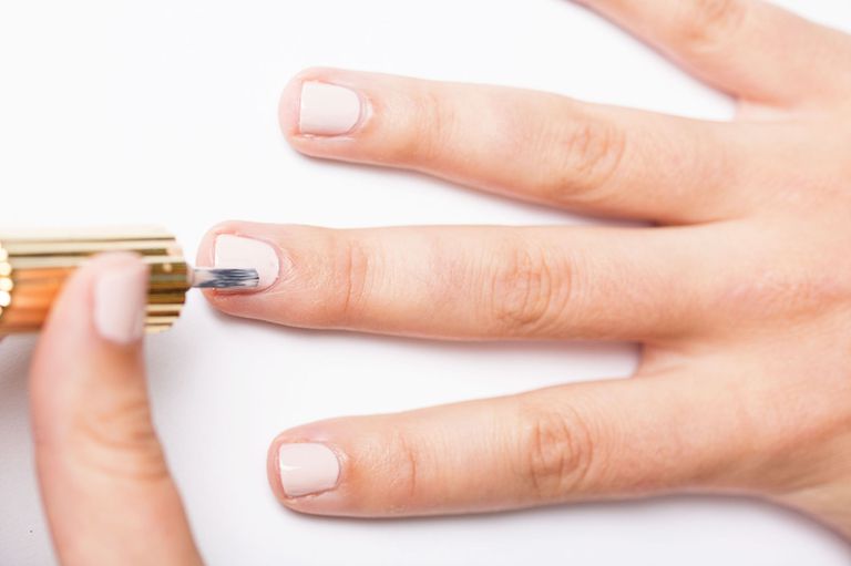 După ce ai șters bine unghiile, acoperă unghiile cu o bază și apoi le poți da cu ojă.