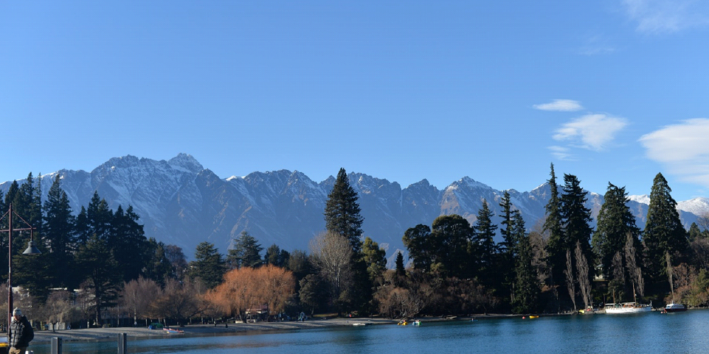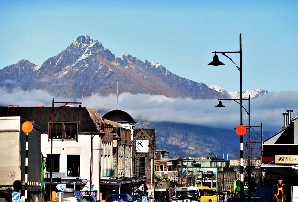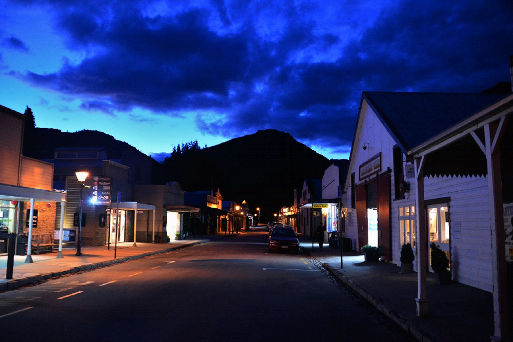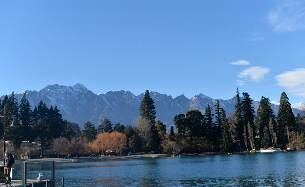 Primul a fost orașul Queenstown, localitate turistică montană din mijlocul Alpilor Sudului, ale căror vărfuri se ridica pâna la peste 3700 metri altitudine, și care formează una din bazele principale ale sporturilor montane de vară (mountain-biking, drumeții) și iarnă (ski). Este așezat pe țărmul de sud al lacului Wakatipu, un lac glacial alimentat de multe izvoare, de mutele ploi și zăpezi ale perioadei de toamnă/iarnă (Aprilie-Octombrie în emisfera sudică), lung de vreo 70 de kilometri, și care șerpuiește printre versanți spectaluloși de ambele părți. În apropiere se află orășele turistice elegante, cu vestigii dine ra căutătorilor de aur pe la mijlocul secolului XIX – un exemplu tipic fiind Arrawtown, la 15 minute cu mașina de Queenstown.
