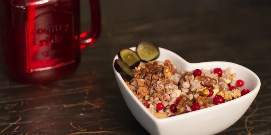 Ingrediente: 40 g hrisca, 2 lingurite de stafide, lingurite de nuci taiate marunt, 2 lingurite de coacaze, 1 lingurita de miere de albine
