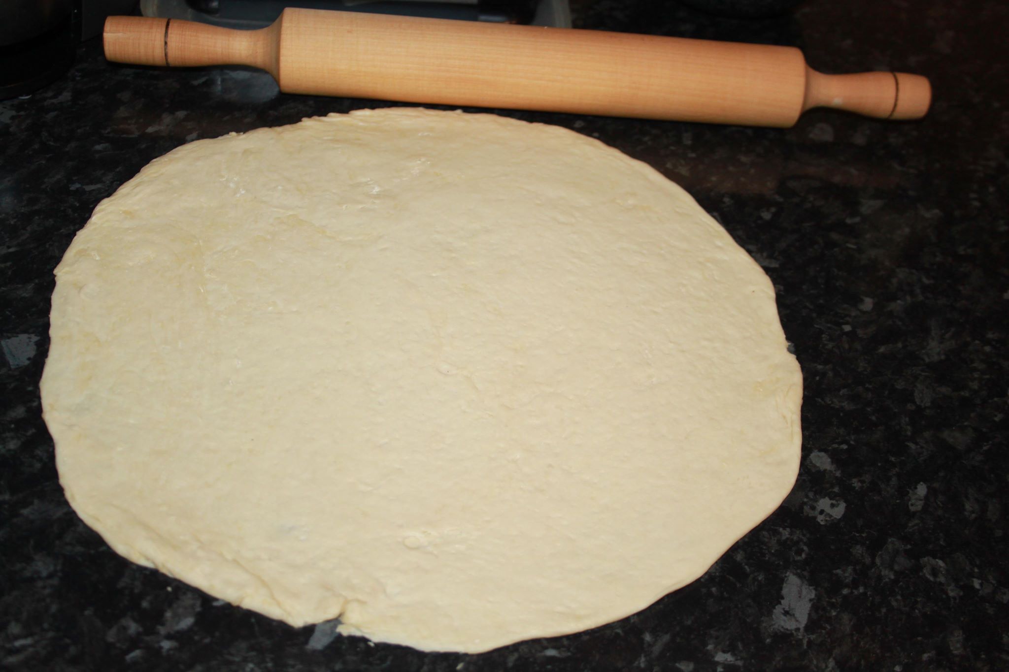 Se întinde aluatul pe o suprafaţă unsă cu ulei, după care îl transferaţi cu ajutorul sucitorului în tavă. Ori o puteţi face direct în tava în care veţi coace pizza.