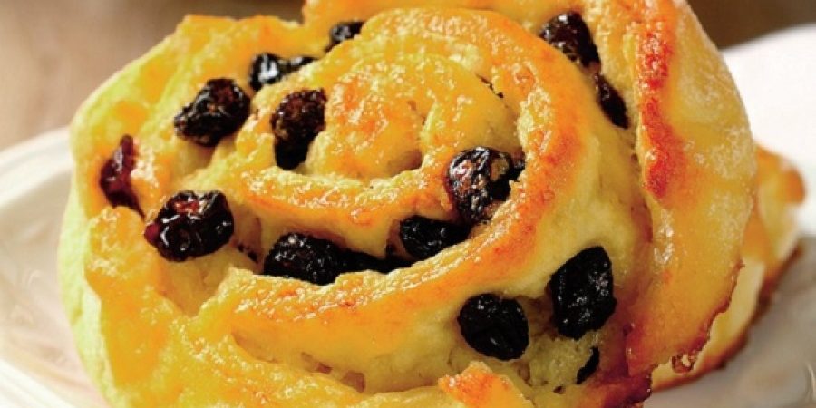 Ai trebuință de: 240 ml lapte dulce, 50 g unt, două ouă, 60 g zahăr tos, un sfert de linguriţă cu sare, 7 g drojdie uscată, 450 g făină, 50 g stafide, un borcan gem de coacăze roşii.