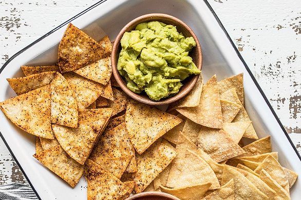 Chipsuri tortilla facute in casa, cu guacamole si sos de rosii reprezinta aperitivul ideal pentru o masa festiva cu mancaruri de post sau pentru o petrecere destinata vegetarienilor.