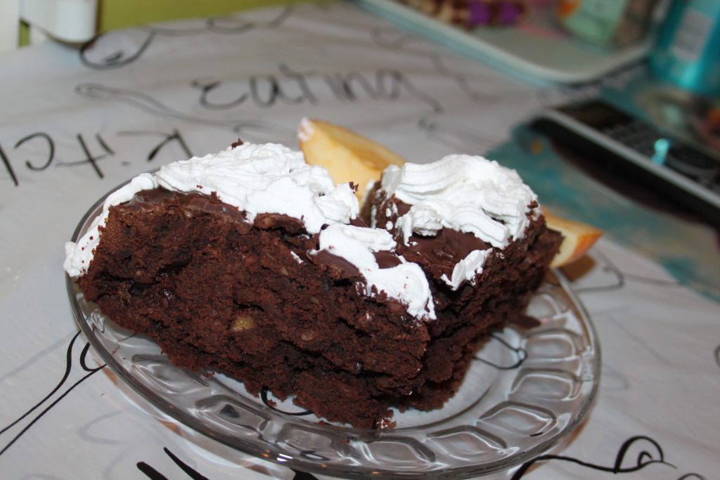 Bateţi ouăle spumă, adăugaţi zahărul, laptele şi le amestecaţi până la omogenizare. Ulterior, adăugaţi făina cernută, praful de copt şi cacao. Amestecaţi uşor să nu rămână cocoloaşe.